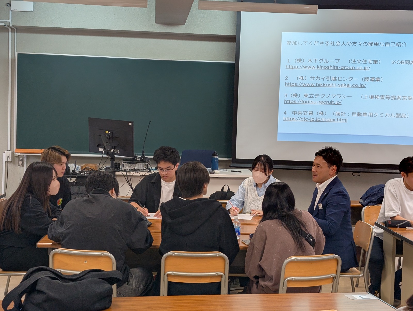 戦略営業論(緒方義人講師)の授業とキャリア支援部の連携で「座談会」と「合同企業懇談会」を実施しました。